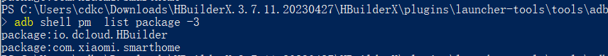 adb shell pm list package -3