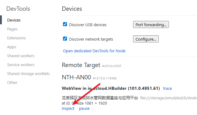 - 导航到 chrome://inspect